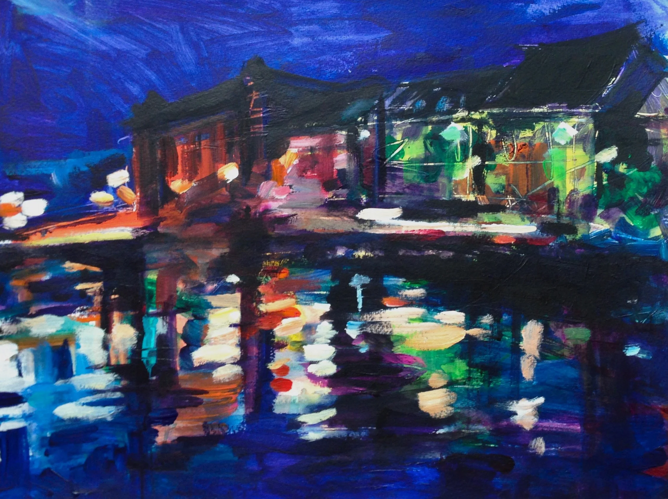 Night Canal, Strasbourg , France. 19x24in., acrylic on watercolour paper. $1000