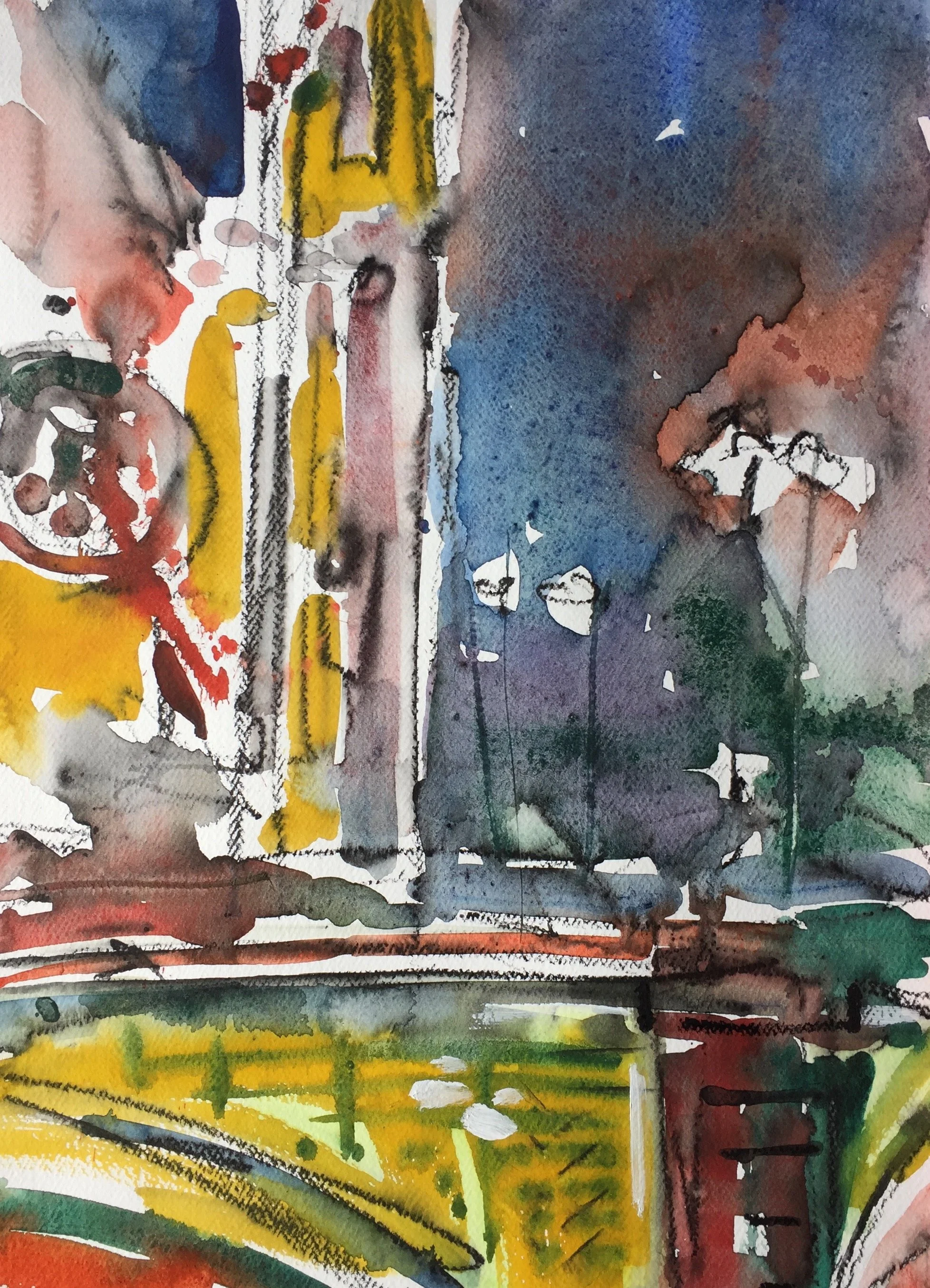 10 pm in Grenoble - 27x20in., watercolour , ink. $800