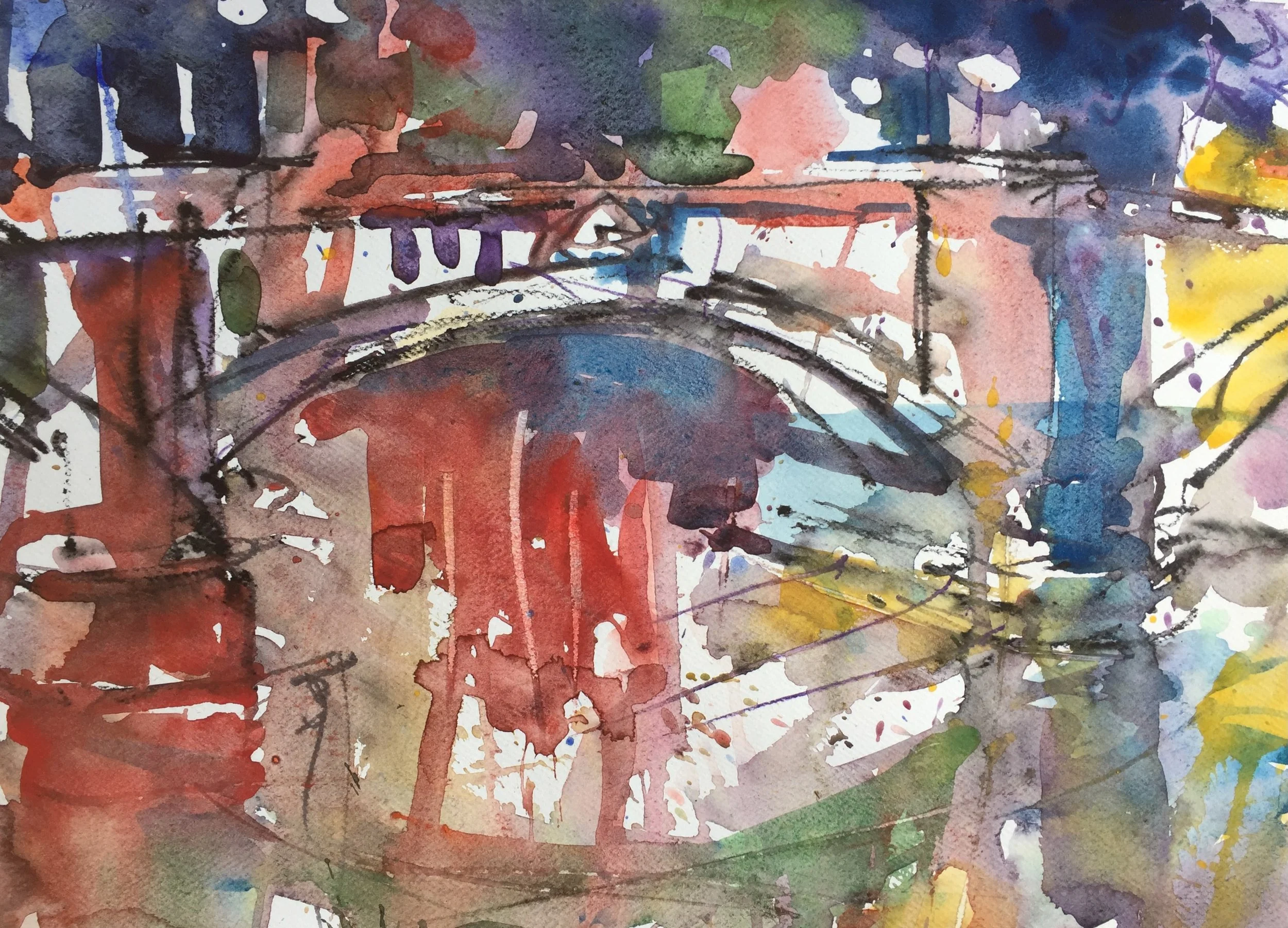 Pont de la Fonderie - 18 x 12in., May 24, 2017. watercolour, Strasbourg Bridge project. $800
