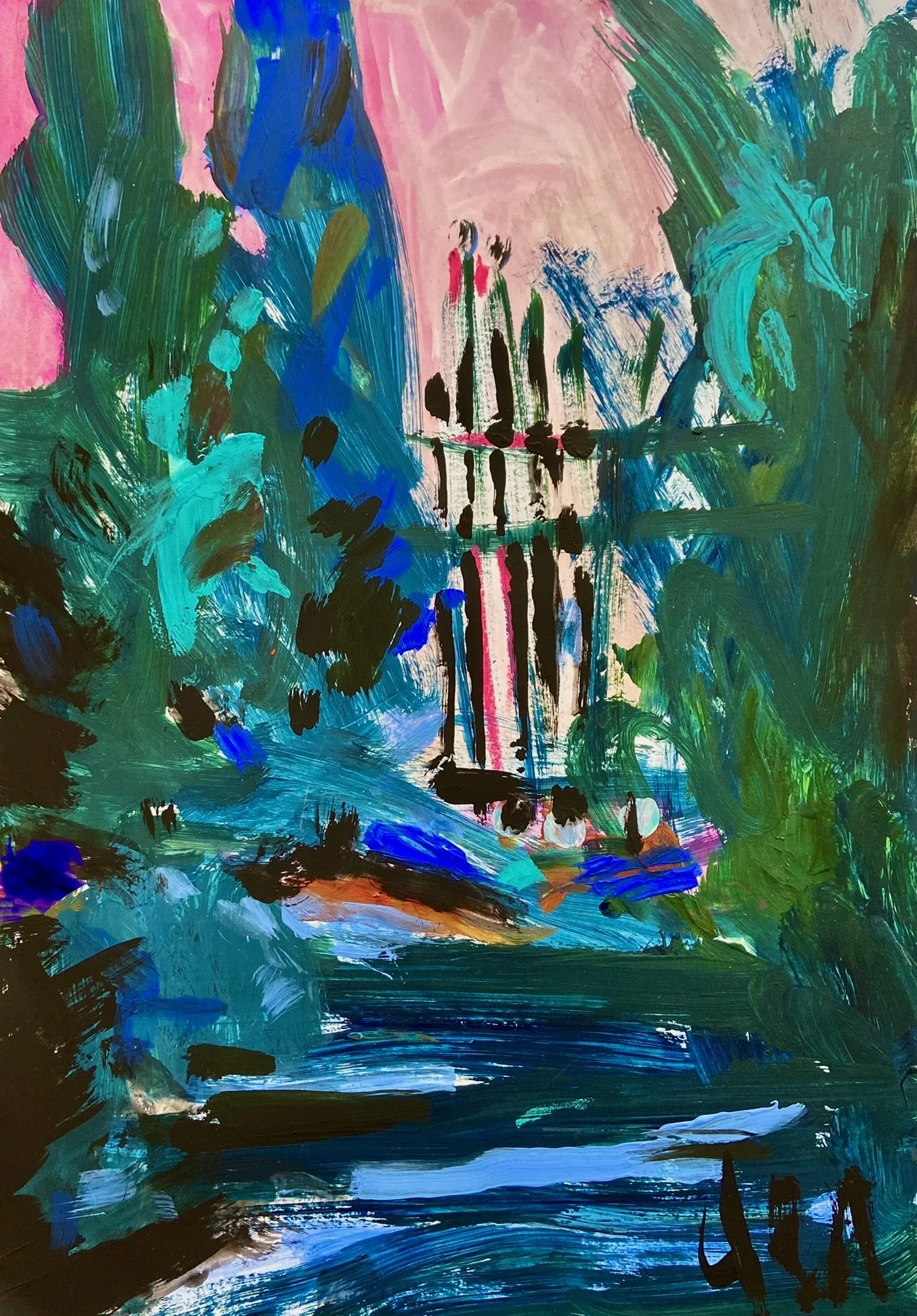 Parc Contades - 7x7in., image size, 15x15in. framed. Watercolor and acrylic. $500