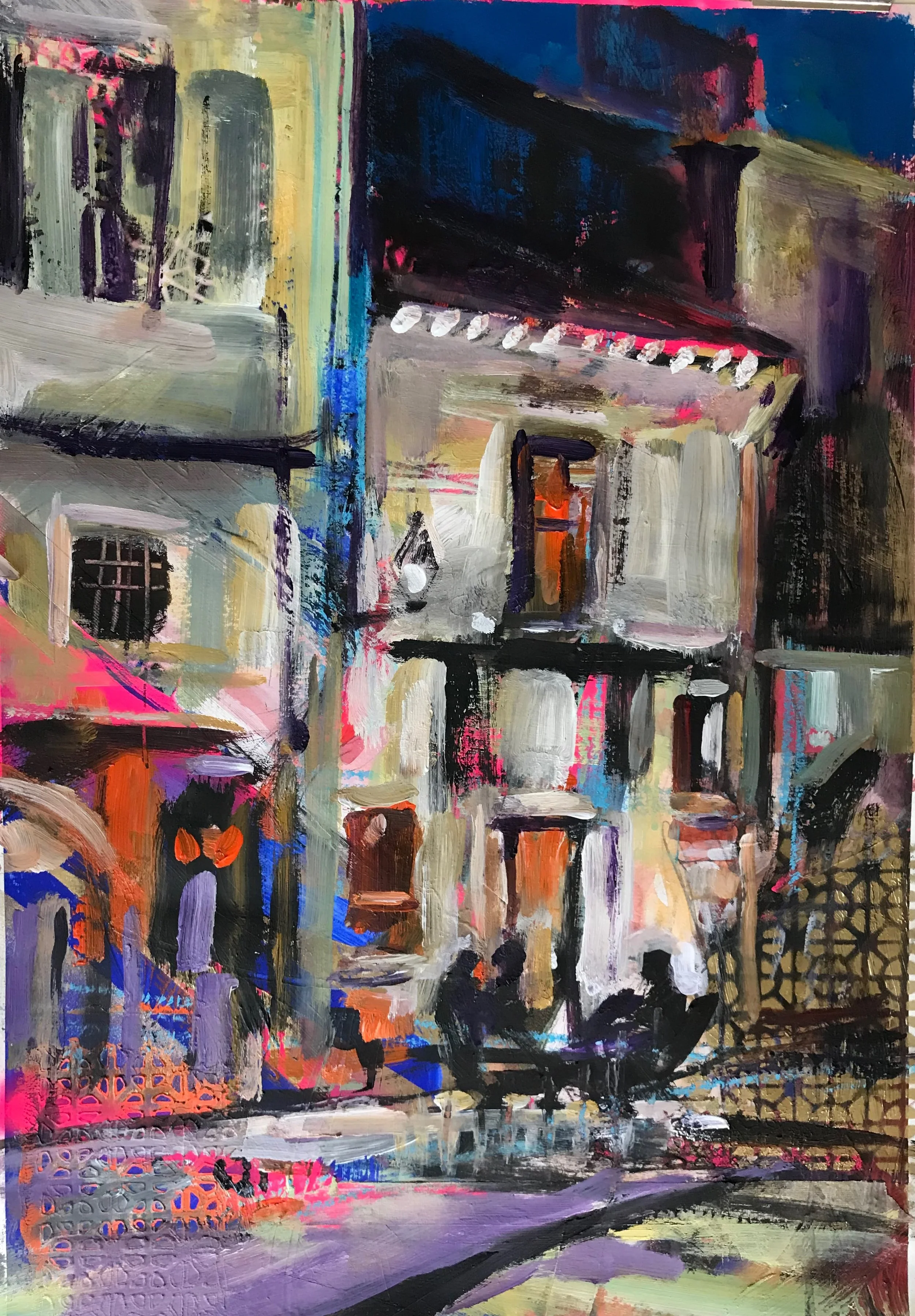 A Night on the Canal - 4 x 4in., 7 x 7in., mt. on black foam core. $150