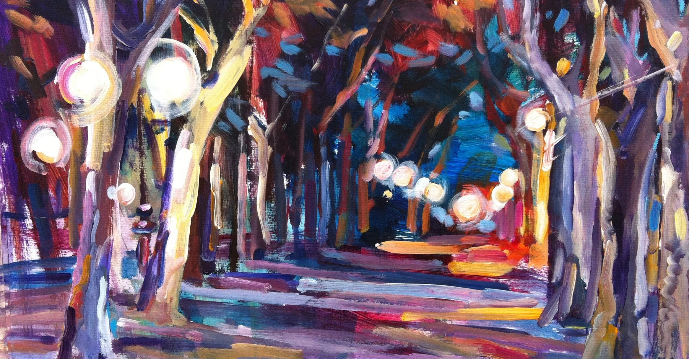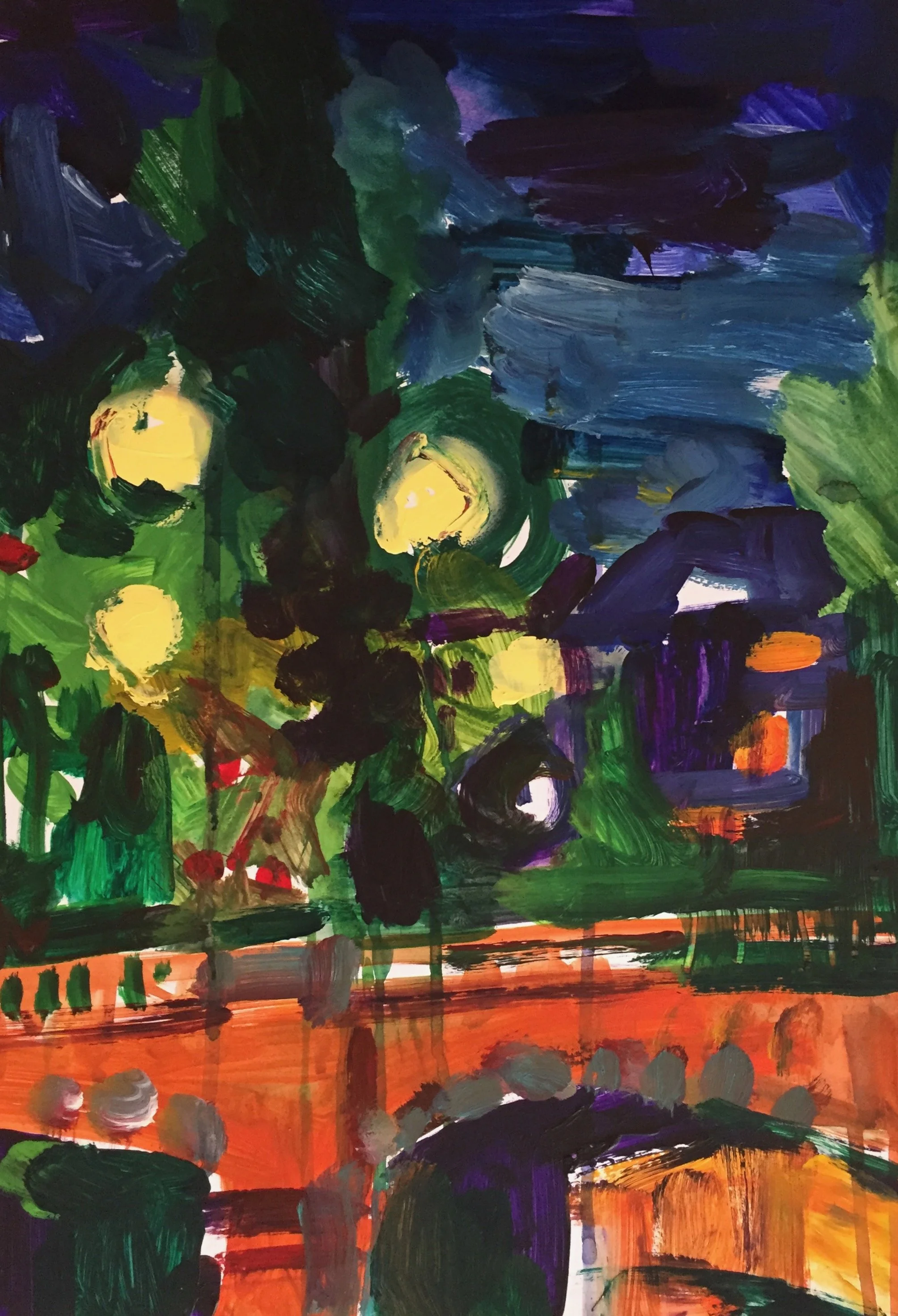 Night in Parc Contades, Strasbourg - 39.5x51in., acrylic on canvas. $2000 -(SOLD)