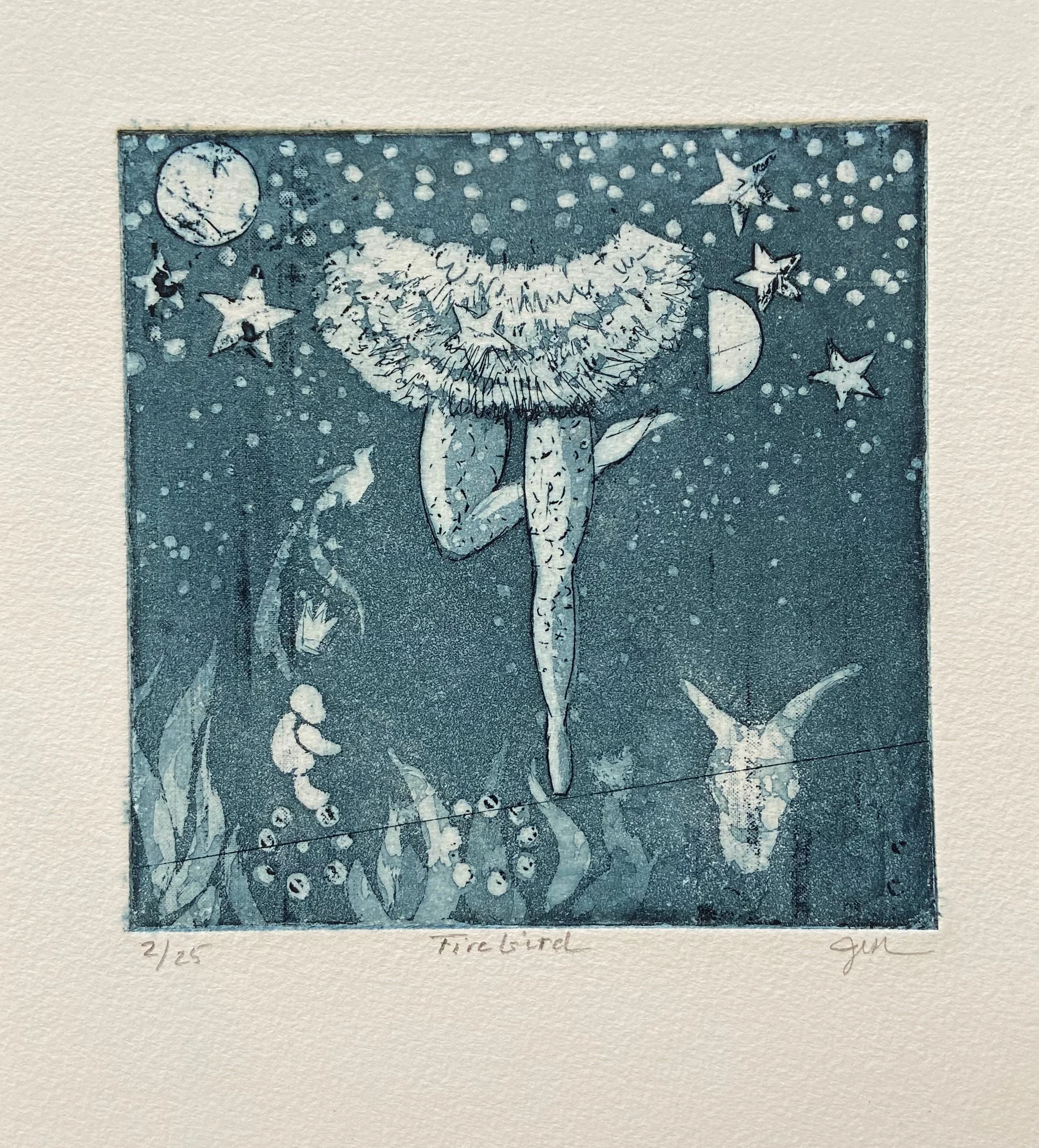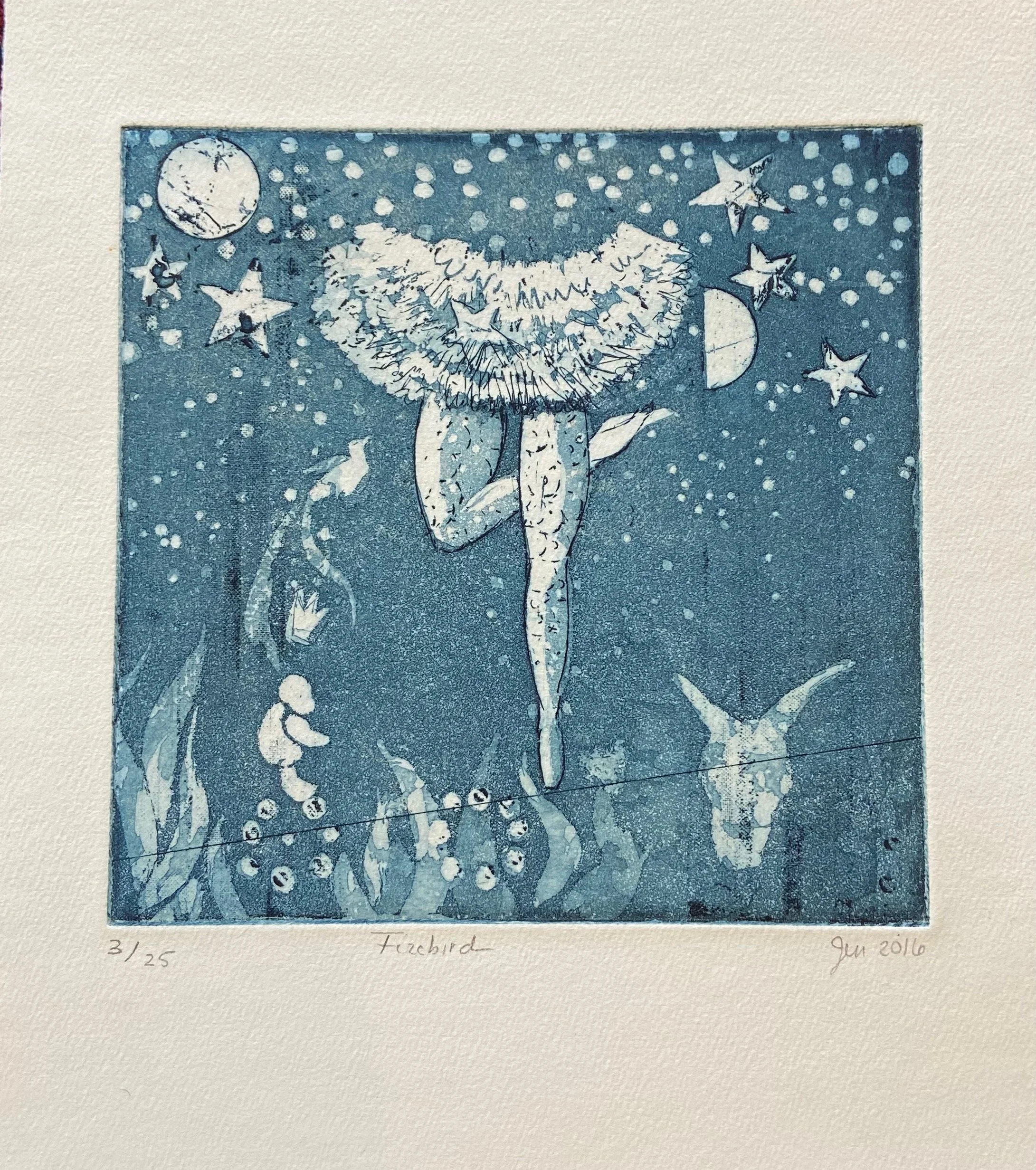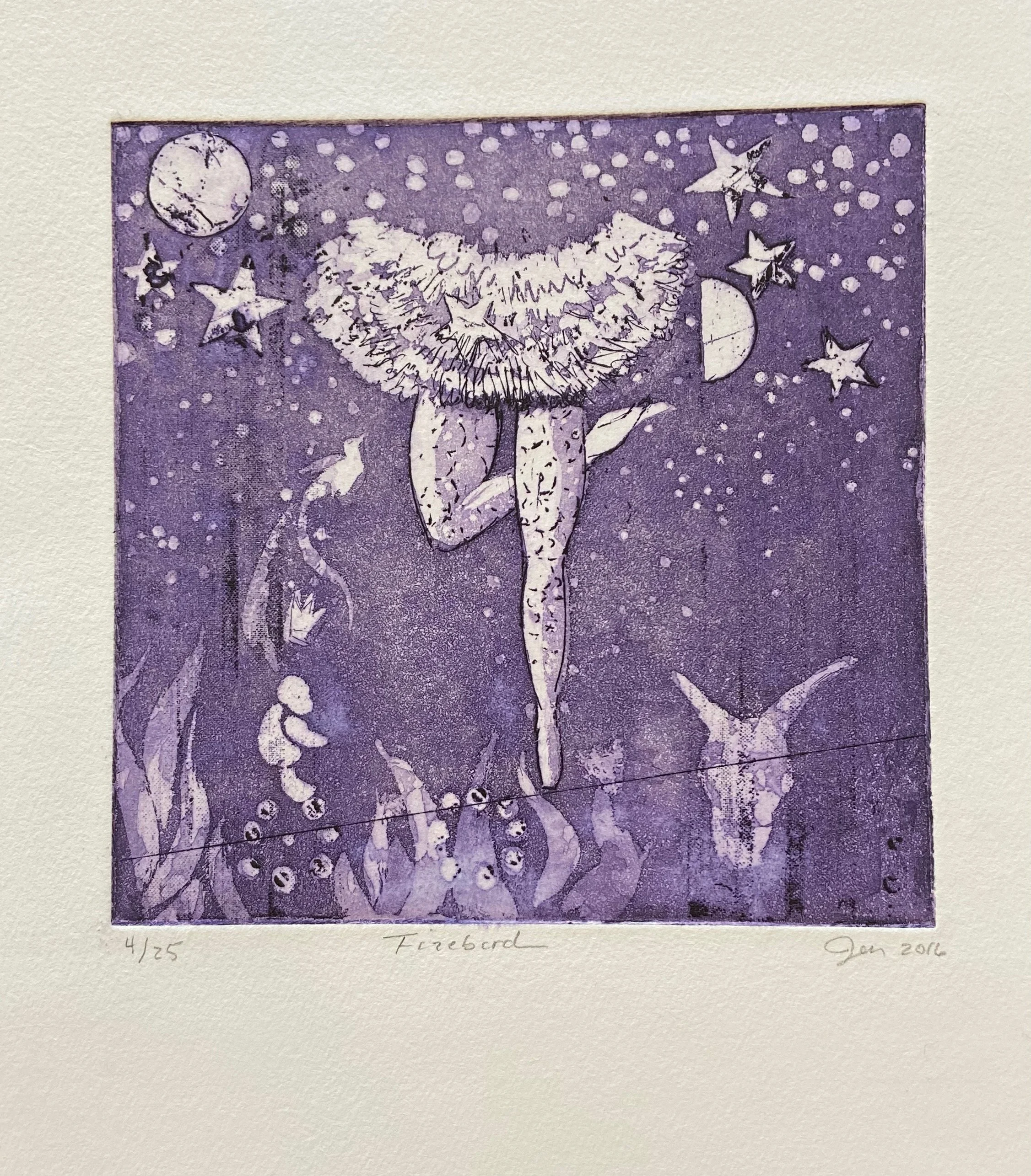 Firebird -5 3/4x 5 3/4 in. (image size), 8x10 paper. $50 (edition of 25#)