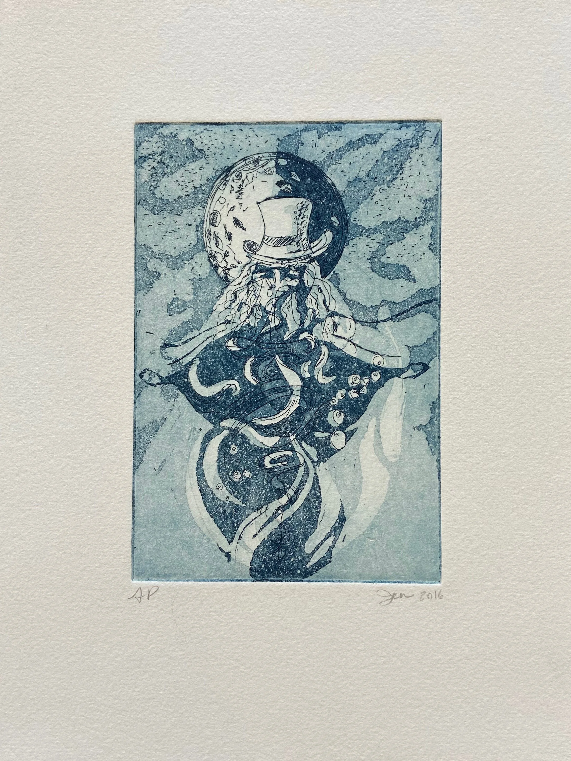 These etchings below were imagined in a course that I took with my friend in Germany. Each image is autobiographical in nature. The images that are displayed are each part of an edition of 24. If your interested in purchasing an etching and the color you like isn’t available any more, please email me and I will print more until the set is complete. laluneorange1@gmail.com